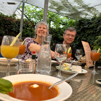 We went to an amazing restaurant inside a giant greenhouse powered by geothermal energy. That complex grows 60% of tomatoes consumed in Iceland. They served big bowls of tomato soup with a fresh basil plant on every table so you could spice it to-taste. And with all those tomatoes you can bet the bloody Mary cocktails were primo.